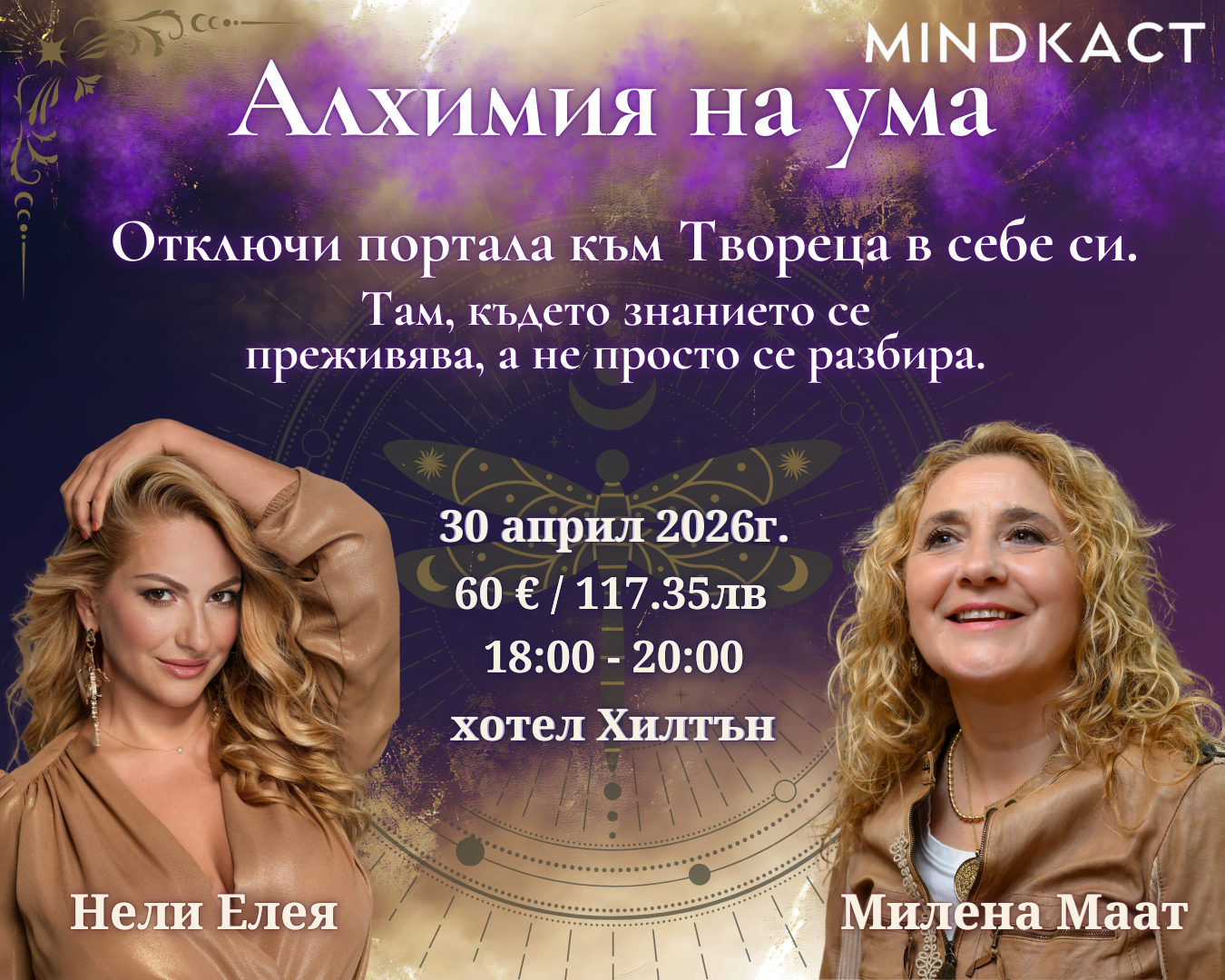 Заедно с Милена Маат ще отворим врата към дълбокото познание за ума – неговите илюзии, капани, величие и способност да се превръща в портал към Твореца. Милена е от онези учители, които не дават готови отговори, а активират вътрешния учител в теб. Срещата с нея е процес на припомняне.